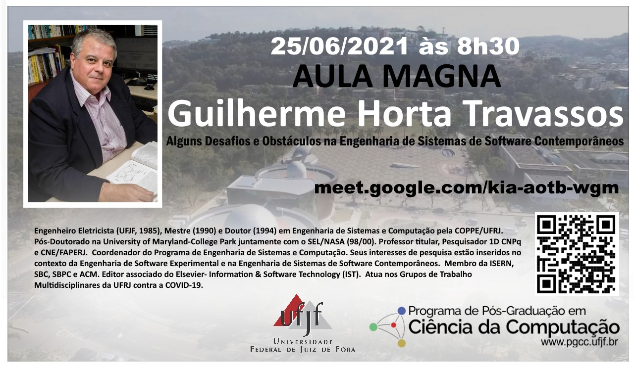 O Prof. Guilherme Horta Travassos (PESC) dará Aula Magna na Universidade Federal de Juiz de Fora (UFJF) com o tema "Alguns Desafios e Obstáculos na Engenharia de Sistemas de Software Contamporâneos".