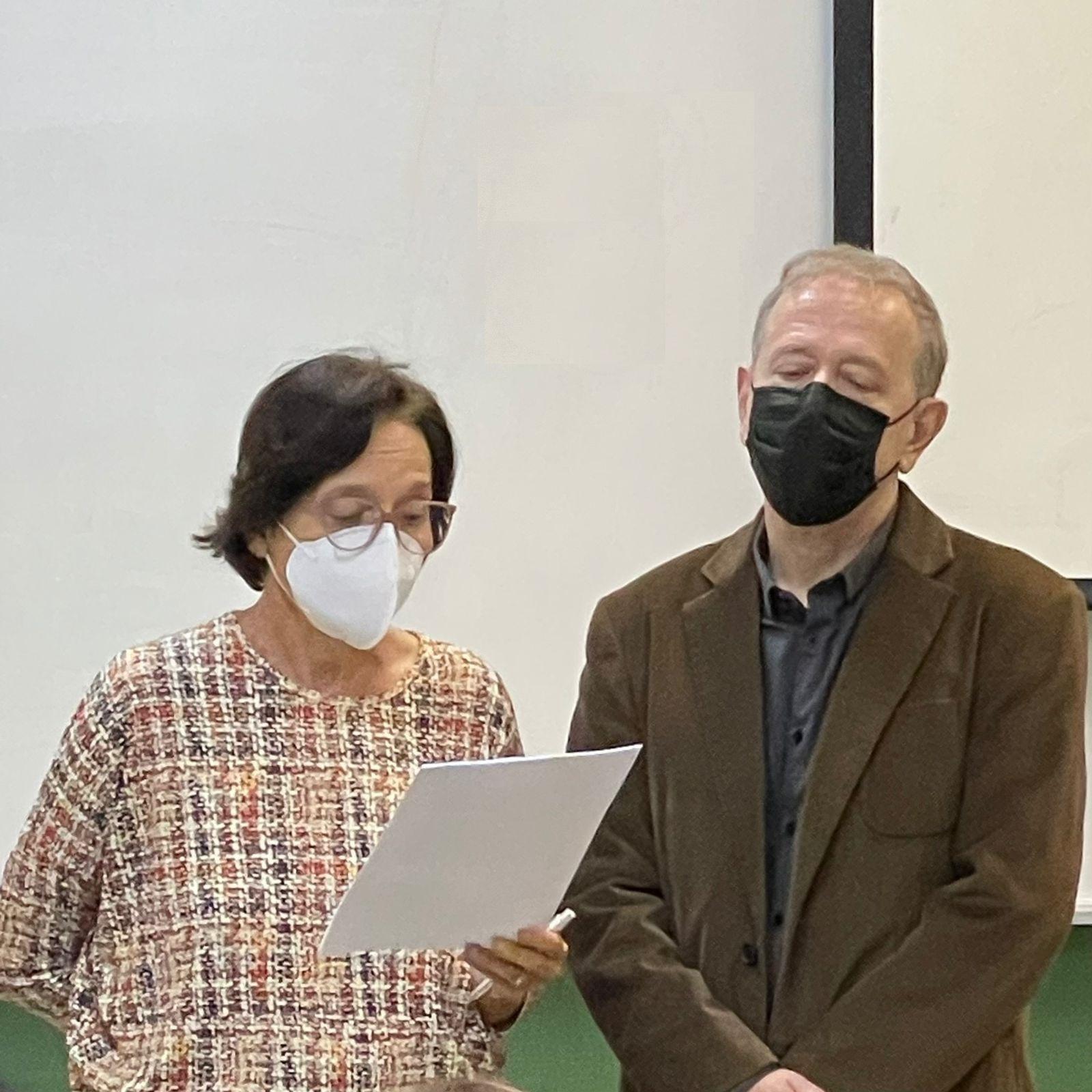 Na foto a Profa. Celina apresenta a decisão da Banca que unanimemente aprovou Pedreira.