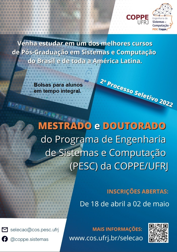 Encontram-se abertas as inscrições ao Processo Seletivo para Ingresso no Mestrado ou no Doutorado do PESC em 2022!