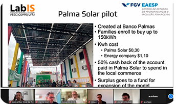Os professores apresentaram um estudo em andamento sobre o uso de moedas locais digitais brasileiras apoiadas tanto pela reciclagem e lixo orgânico, quanto pela produção de energia fotovoltaica. Esta última destaca-se como uma estratégia para combater a pobreza energética, definida pelo Ministério da Fazenda do Brasil como o acesso limitado a serviços de energia por comunidades vulneráveis. A abordagem visa promover a utilização sustentável da energia simultaneamente ao fortalecimento da economia local, em sinergia com iniciativas semelhantes implementadas em regiões da Ásia, Europa, Estados Unidos e África. Estas experiências demonstram que o aproveitamento da energia solar para apoiar moedas locais pode combater eficazmente a pobreza energética e expandir a utilização de energia limpa. Esta abordagem está diretamente alinhada com os Objetivos de Desenvolvimento Sustentável (ODS) das Nações Unidas, em particular o ODS 1 (ausência de pobreza) e o ODS 7 (energia acessível e limpa).