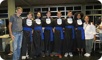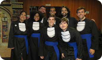 Na foto, da esquerda para direita: Daniel Ratton (Paraninfo), André Aranha Schlaepfer, Lucas Bezerra Storino, Luiz Gustavo Costa Marques de Oliveira, Patrick Carneiro Trindade, Matheus Lomba de Rezende Conde, Lidiana Souza dos Anjos, Claudia Helena Prata (Funcionária Homenageada).