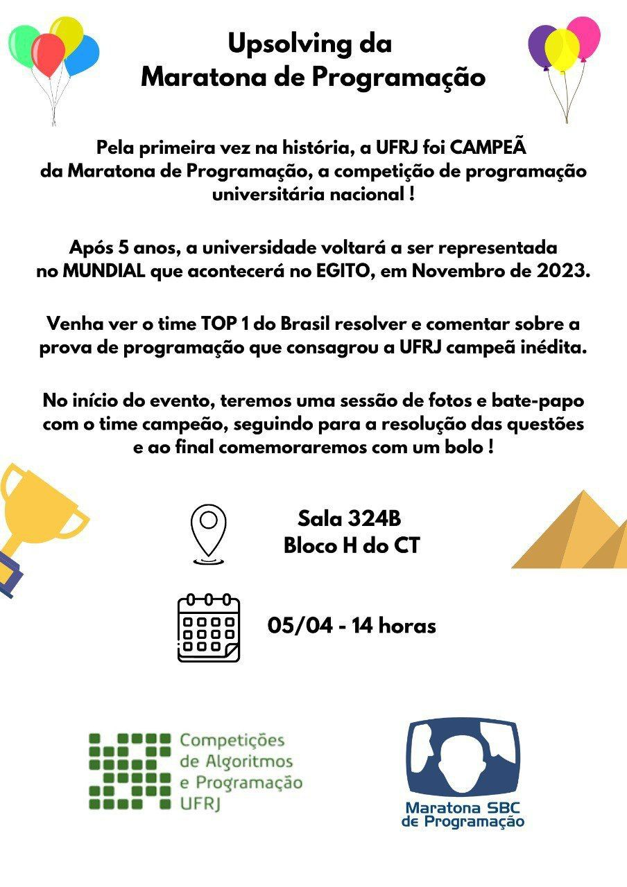 Venha ver o time TOP 1 do Brasil resolver e comentar sobre a prova de programação que consagrou a UFRJ campeã.
