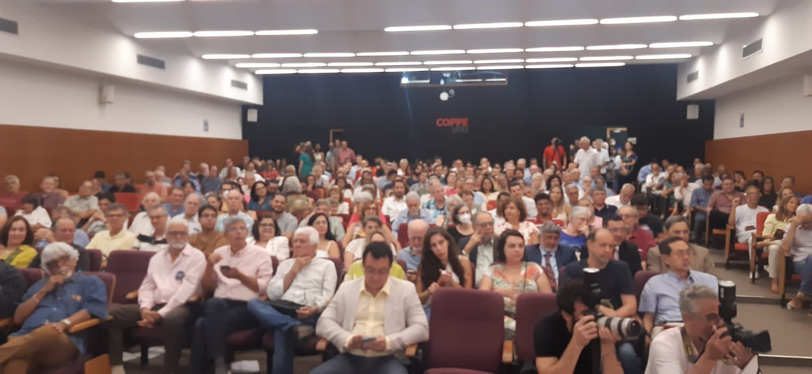 O auditório do CT-2 na COPPE/UFRJ ficou superlotado, em 29/03/2023, numa manhã de homenagens aos 80 Anos do Prof. Nelson Maculan (PESC e IM/UFRJ).