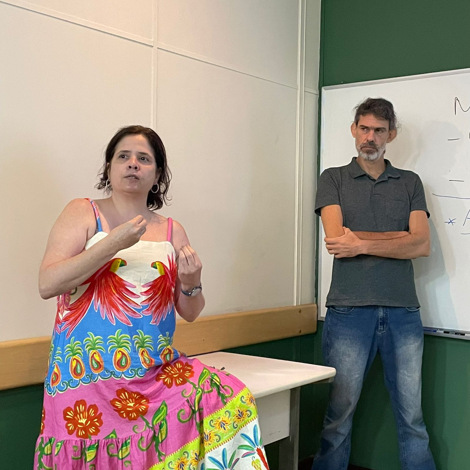 Laura e Daniel falam sobre o PESC aos novos alunos.